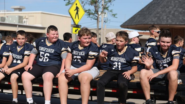 Kingfisher High School’s Homecoming festivities took place on September 19th, starting with the homecoming parade at 4:00 PM. The parade featured creative class floats, homecoming king and queen candidates, and marching junior high and high school bands. This year’s class elective royalty included King Andrew Takape and Queen Elizabeth Pickle representing Varsity Choir, King Jackson Garrett and Queen Parker LeForce from JV Choir, King Christopher Sanders and Queen Sara Farris for Band, and King Livia Varnell as Drama Queen. Floats from sports teams of all ages added to the excitement, making it a true celebration of school spirit, talent, and community pride.