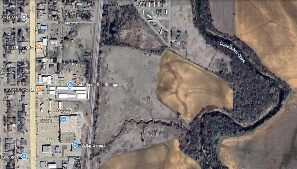In order for the Airport to disturb the wetlands and extend their runway they have to replace it and put it elsewhere. The solution to this kerfuffle is Harry’s Hole. The Army Corps of Engineer’s biologist has found that there is no place in Kingfisher that scored as high or would be more suitable for a wetlands than Harry’s Hole, which is already owned by the city, and the land south of it which is owned by cooperating individuals. The proposed property is located east of the Union Pacific Railroad tracks behind KFC, CubeSmart Self Storage, Atwoods, United, and Dollar General. The idea is that the airport would go about their extension and all of the excavated soil and plants would be transported to Harry’s Hole and would become a new wetlands for everybody to enjoy without cost to the Airport or the City.